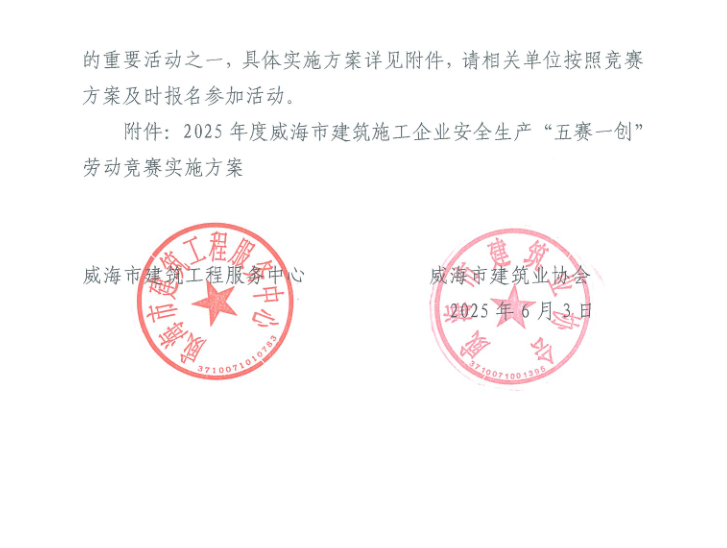 >關于開展2025年度威海市“技能興威”職業技能競賽--威海市建筑施工企業安全生產“五賽一創”勞動競賽的通知
