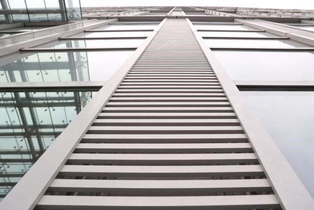 4.鋁合金格柵安裝牢固、通透,與玻璃幕墻搭配立面層次分明,提升整體觀感效果。 為保證安全,所有外懸窗增加防脫落措施。